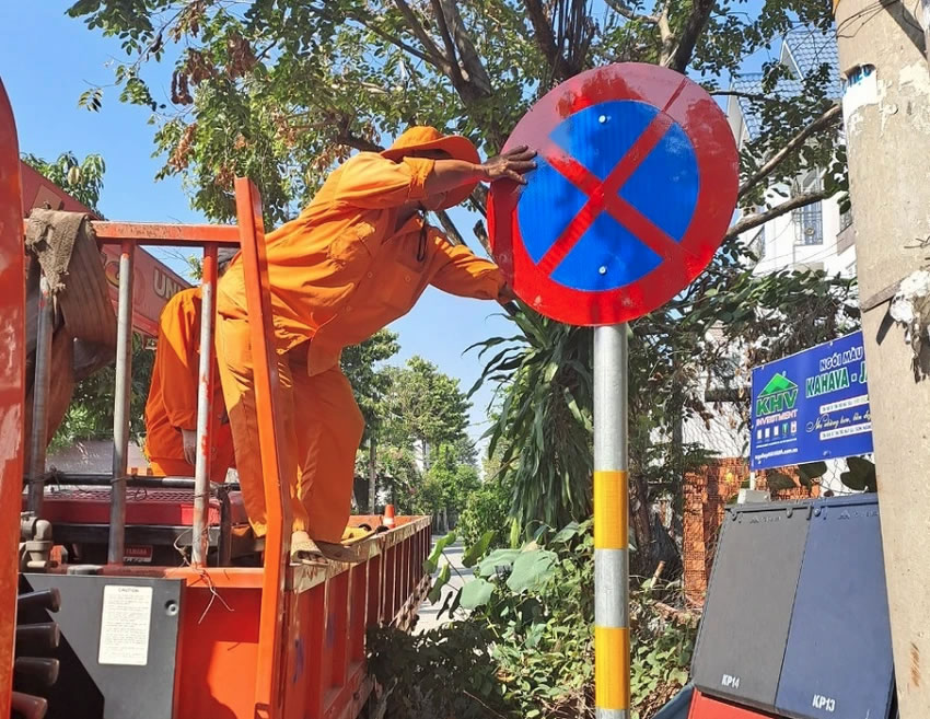 Thi công lắp đặt biển báo giao thông đường phố Hà Tĩnh